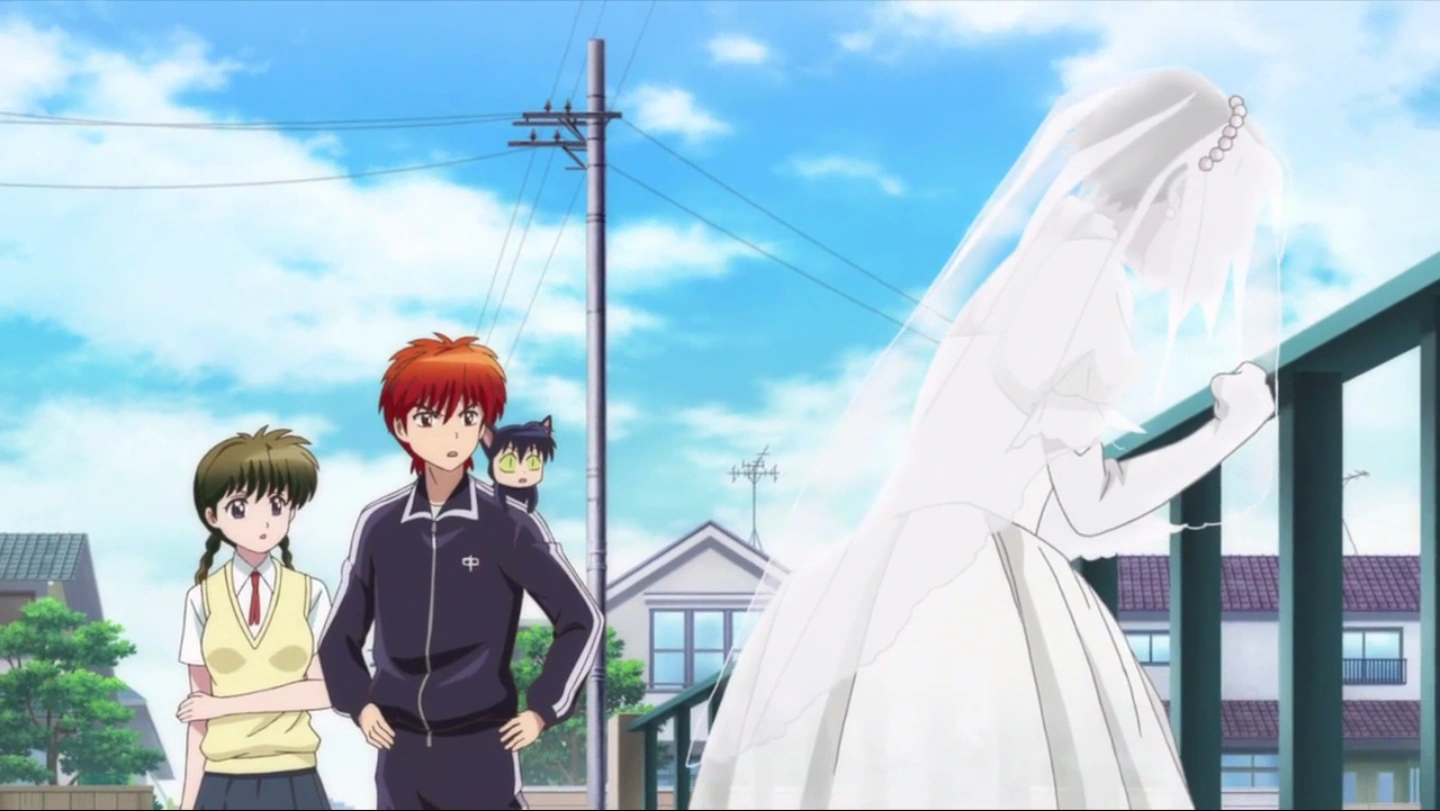 A ghost wearing a wedding dress is wandering around asking anyone for the location of a chapel, although there was only one in this neighborhood that became a coffee shop, leading Rinne and Sakura to investigate there.