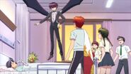 Rinne is thwarted by Masato, the demon Sakura saw earlier putting the poor kanji on Reiji’s head. He has a deep grudge against Rinne for thwarting him as a child as he attempting to take the soul of different, supposedly dying animals to hell. Reiji’s activities become worse, fueled by Misato’s lies. He gets to the point to where he believes a poorly Photoshopped image of Suzu and Tomoya is proof of them kissing. Sakura, riding Rokumon’s flying form, attempts to talk sense to Reiji, but he won’t listen thanks to the curse. Rinne arrives to rescue the pair from Masato’s attack, then launches a wave of Oil Absorbing Sheets at Reiji, which removes the curse kanji. Despite being free, Reiji’s regrets over what he has done allow Misato to trap his spirit in a bottle and take him to hell, where Rinne follows.