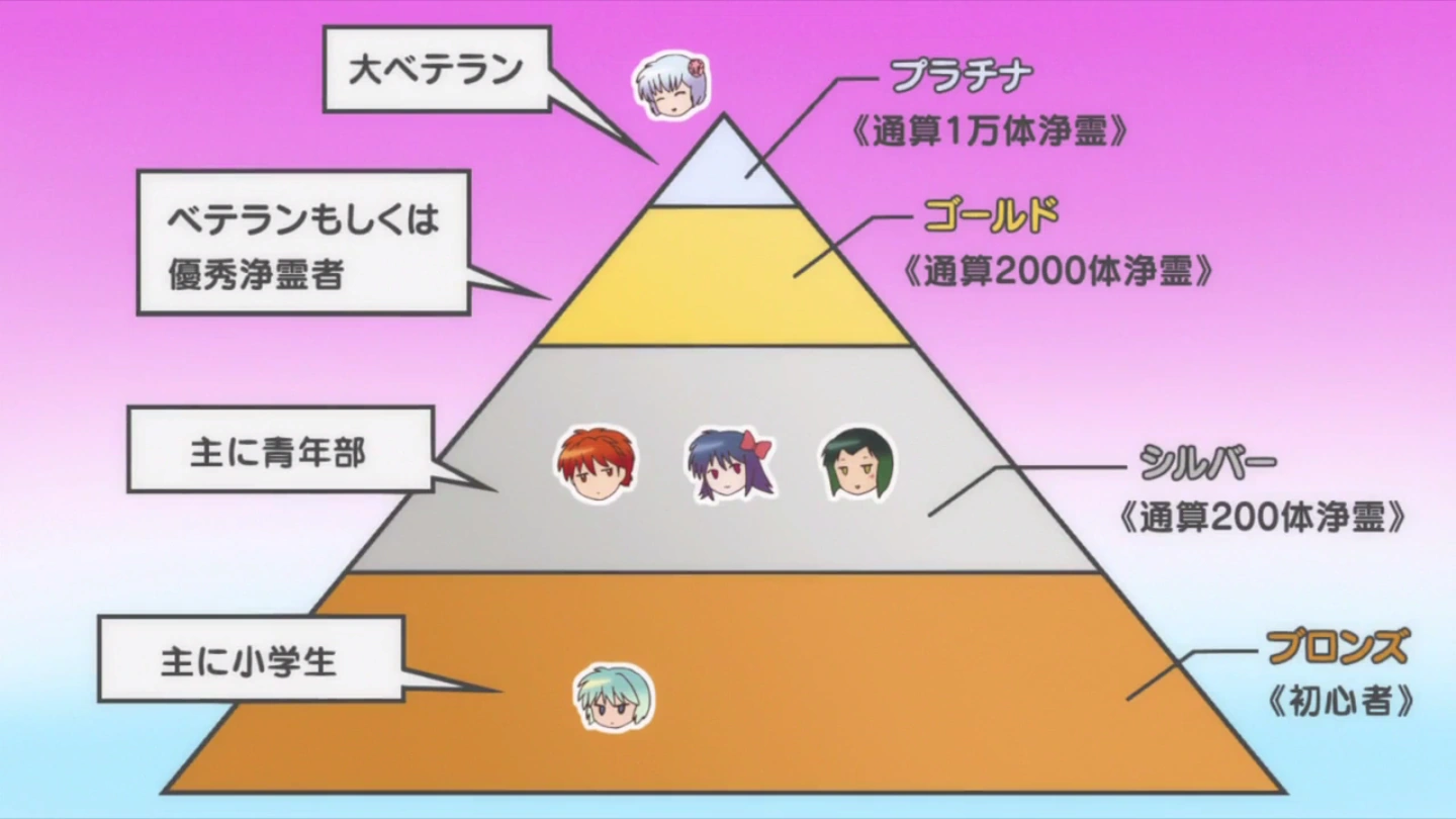 Each holds a license which indicate their level depending on how much spirits they helped rest.